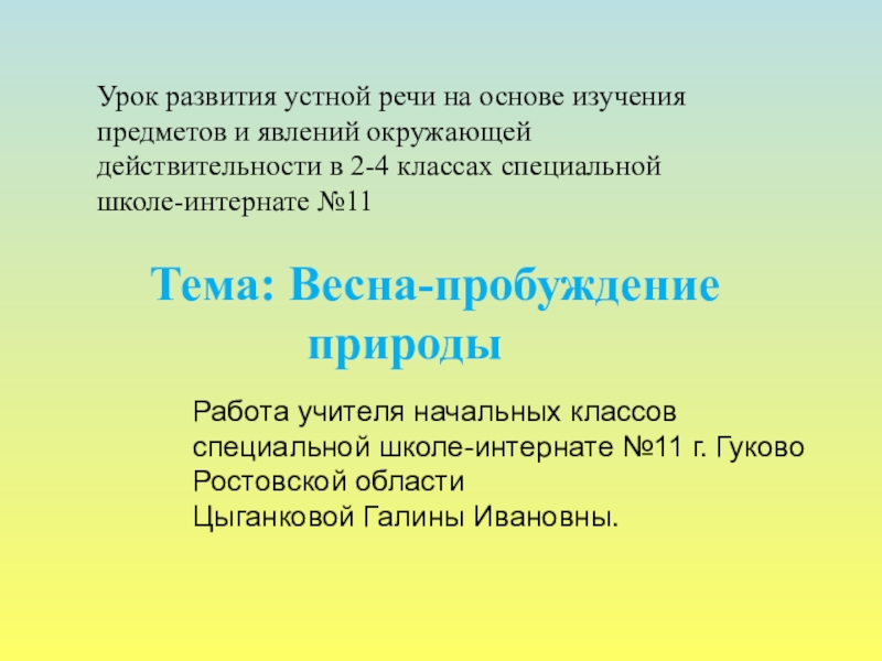 Урок развития устной речи на основе изучения предметов и явлений окружающей действительности в 2-4 классах специальной школе-интернате №11