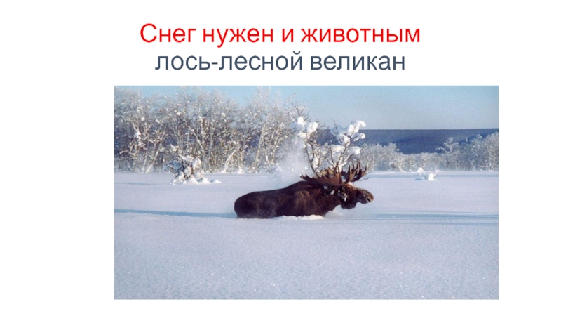 Слайд 10Снег нужен и животным лось-лесной великан