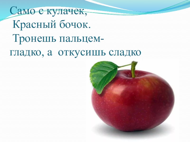 Слайд 6Само с кулачек, Красный бочок. Тронешь пальцем- гладко, а откусишь сладко