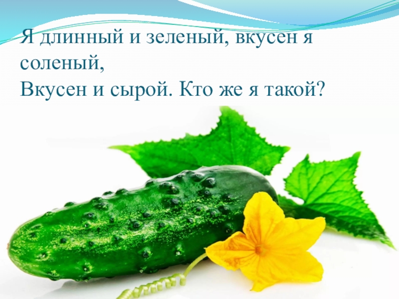 Слайд 8Я длинный и зеленый, вкусен я соленый, Вкусен и сырой. Кто же