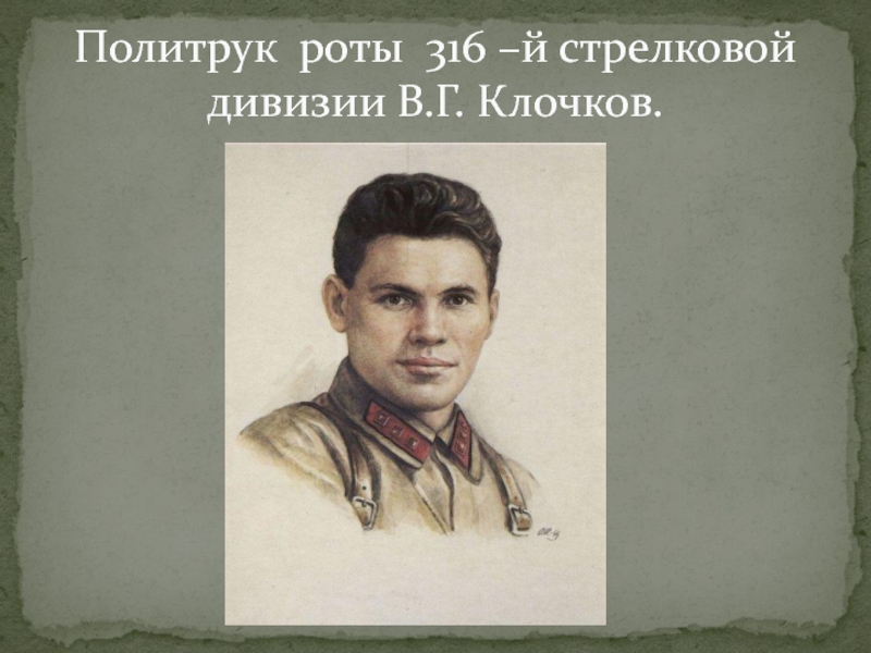 Слайд 25Политрук роты 316 –й стрелковой дивизии В.Г. Клочков.