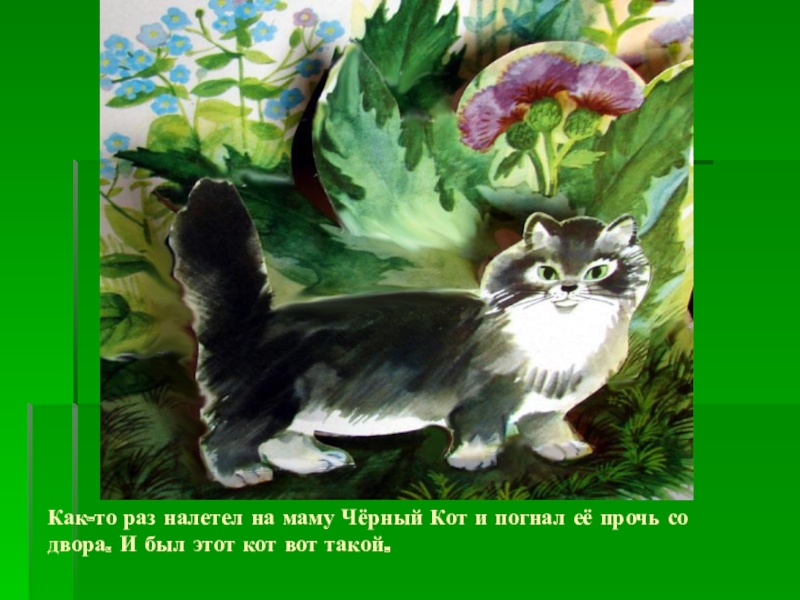 Слайд 5Как-то раз налетел на маму Чёрный Кот и погнал её прочь
