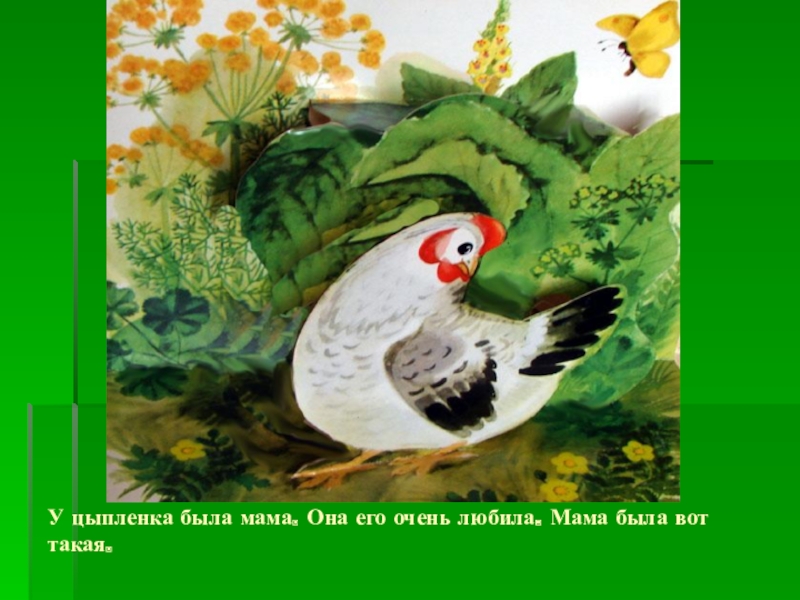 Слайд 3У цыпленка была мама. Она его очень любила. Мама была вот