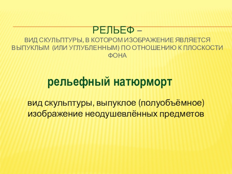 вид скульптуры, выпуклое (полуобъёмное) изображение неодушевлённых предметов