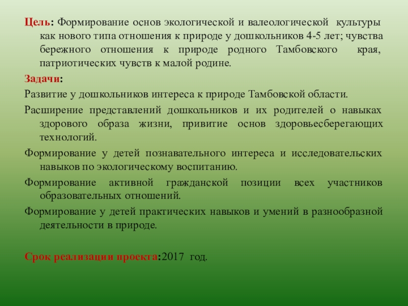 Проект «Формирование эколого-валеологических компетенций у детей 4-5 лет»