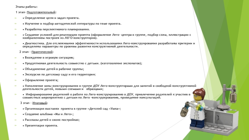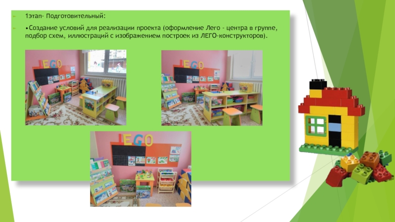 • Создание условий для реализации проекта (оформление Лего - центра в