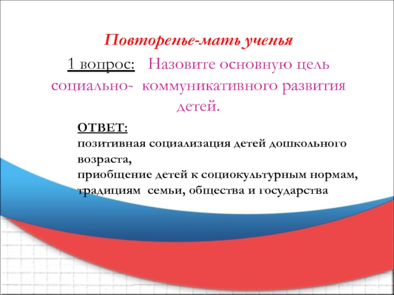 1 вопрос: Назовите основную цель социально- коммуникативного развития детей.