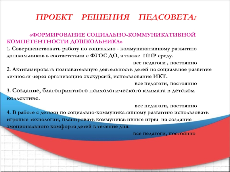 ПРОЕКТ РЕШЕНИЯ ПЕДСОВЕТА: