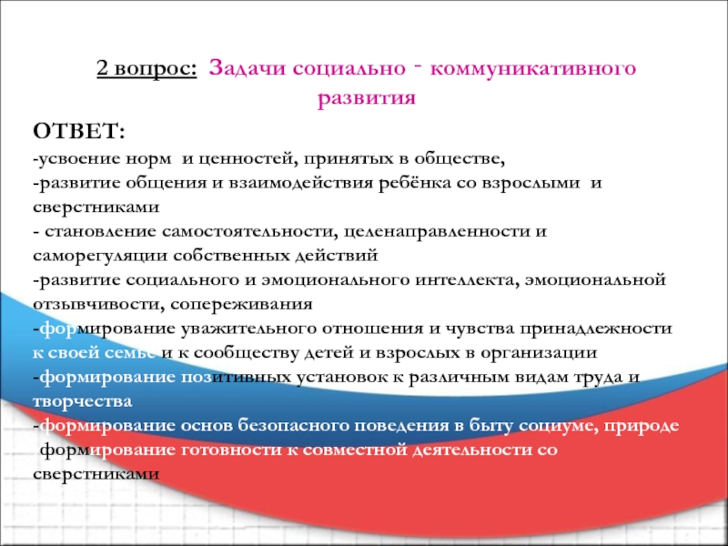 2 вопрос: Задачи социально ‐ коммуникативного развития