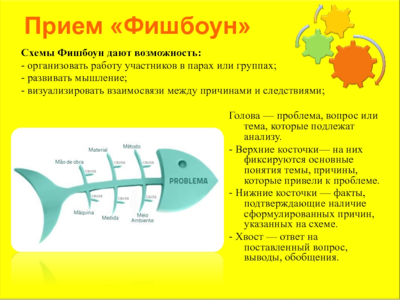 - Нижние косточки — факты, подтверждающие наличие сформулированных причин, указанных на схеме.