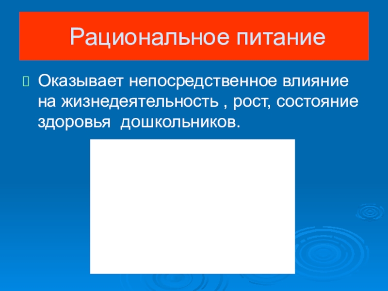 Оказывает непосредственное влияние на жизнедеятельность , рост, состояние здоровья дошкольников.