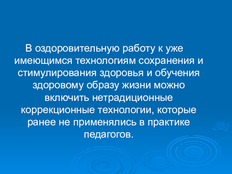 и обучения здоровому образу жизни можно включить нетрадиционные коррекционные технологии, которые ранее не применялись в практике педагогов.
