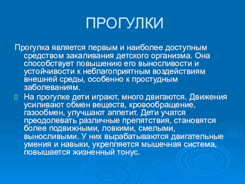 Прогулка является первым и наиболее доступным средством закаливания детского организма. Она