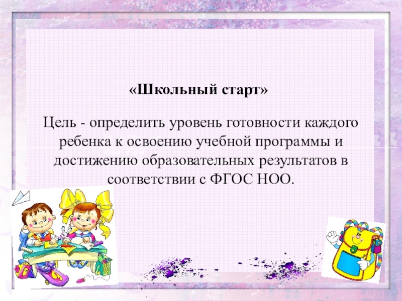 Цель - определить уровень готовности каждого ребенка к освоению учебной программы и достижению образовательных результатов в соответствии с ФГОС НОО.