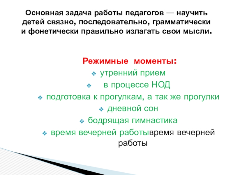 Основная задача работы педагогов — научить детей связно, последовательно, грамматически и фонетически правильно излагать свои мысли.