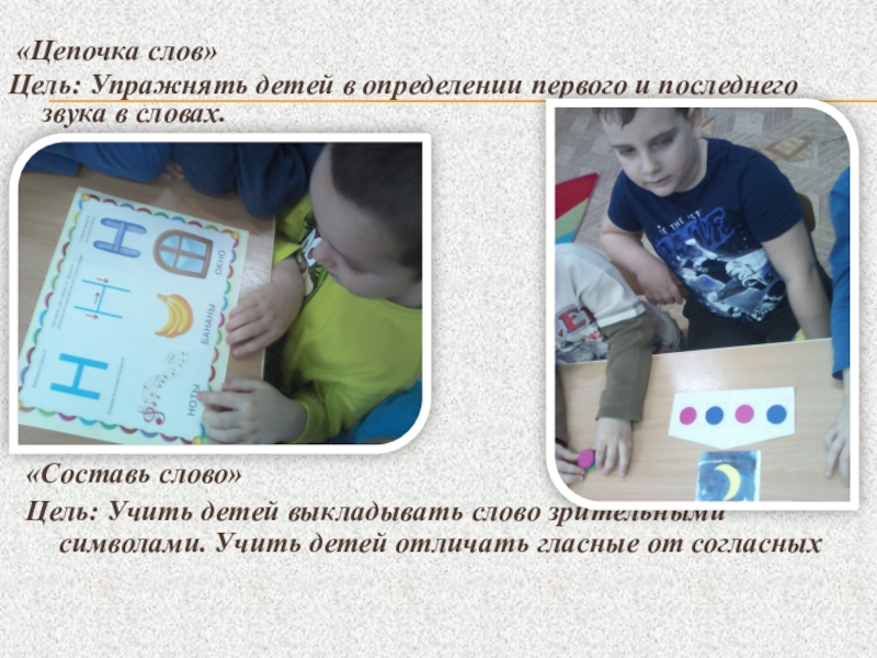 Цель: Учить детей выкладывать слово зрительными символами. Учить детей отличать гласные от согласных