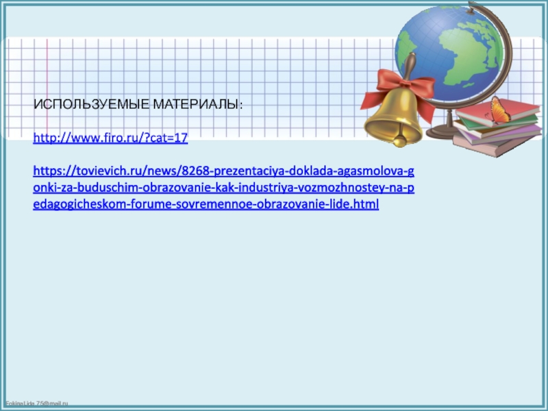 Это сайт презентаций, где можно хранить и обмениваться своими презентациями, докладами, проектами, шаблонами в формате PowerPoint с другими пользователями. Мы помогаем школьникам, студентам, учителям, преподавателям хранить и обмениваться учебными материалами.