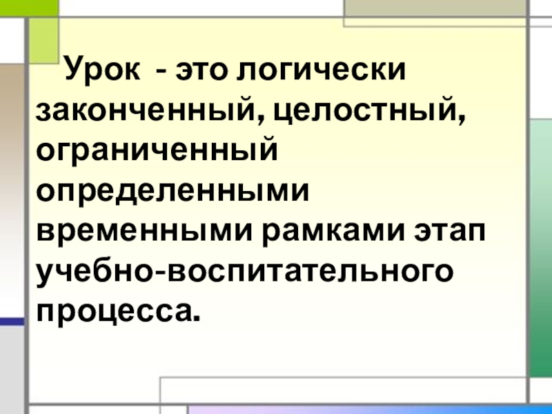 Слайд 3Урок - это логически законченный, целостный, ограниченный определенными временными рамками этап