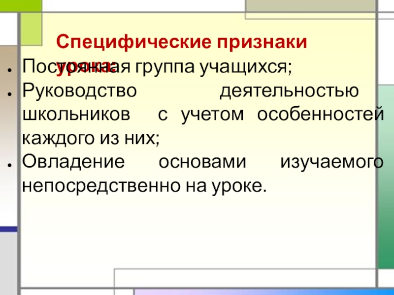 8. Сочетание общеклассных форм работы на уроке с групповыми и индивидуальными, стремление к организации учебного труда как коллективной деятельности.