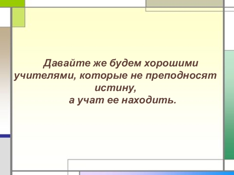 Слайд 14Давайте же будем хорошими учителями, которые не преподносят истину,