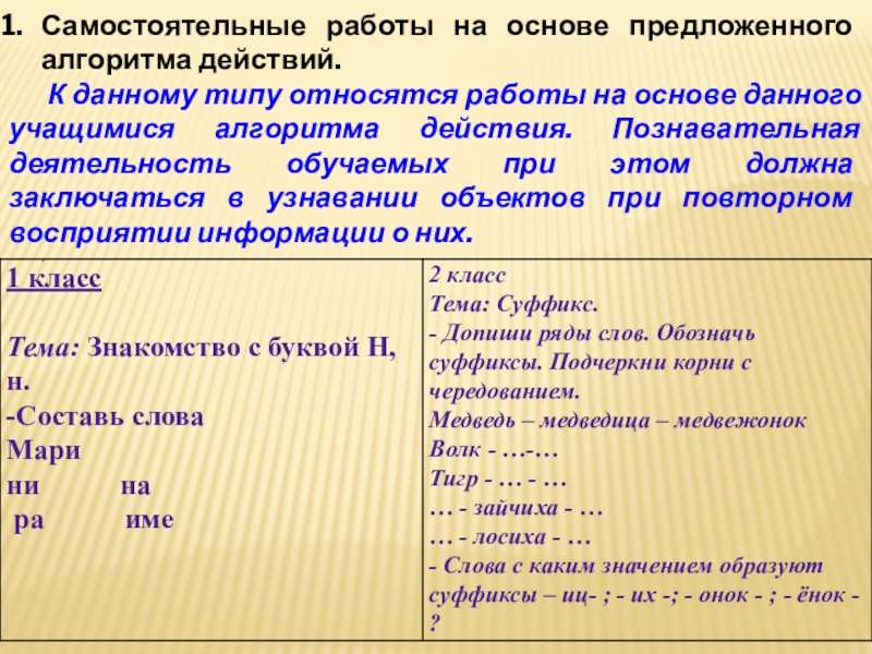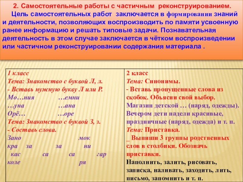 формировании знаний и деятельности, позволяющих воспроизводить по памяти усвоенную ранее информацию и решать типовые задачи. Познавательная деятельность в этом случае заключается в чётком воспроизведении или частичном реконструировании содержания материала .