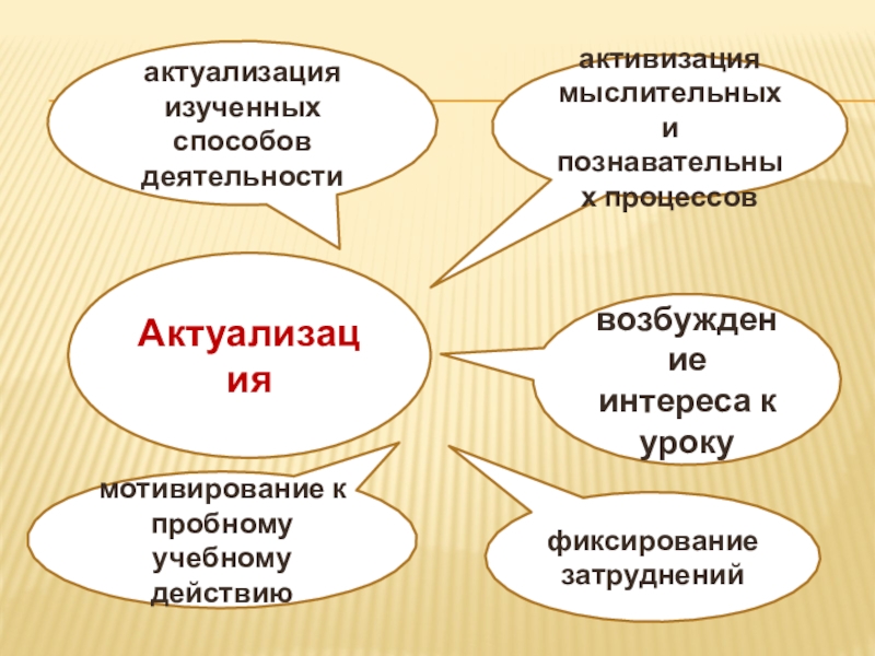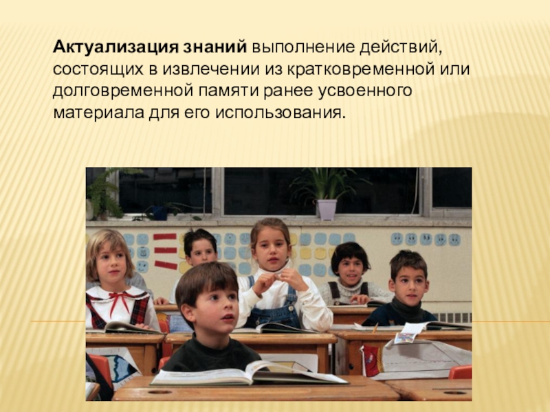 Слайд 17Актуализация знаний выполнение действий, состоящих в извлечении из кратковременной или долговременной памяти