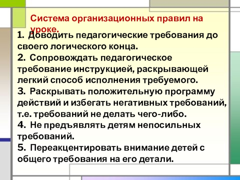 2. Сопровождать педагогическое требование инструкцией, раскрывающей легкий способ исполнения требуемого.