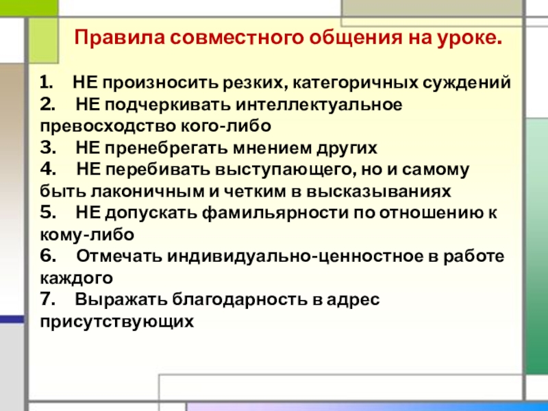 4. НЕ перебивать выступающего, но и самому быть лаконичным и четким в высказываниях