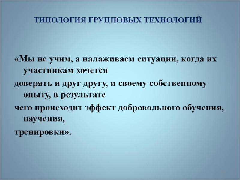 ТИПОЛОГИЯ ГРУППОВЫХ ТЕХНОЛОГИЙ