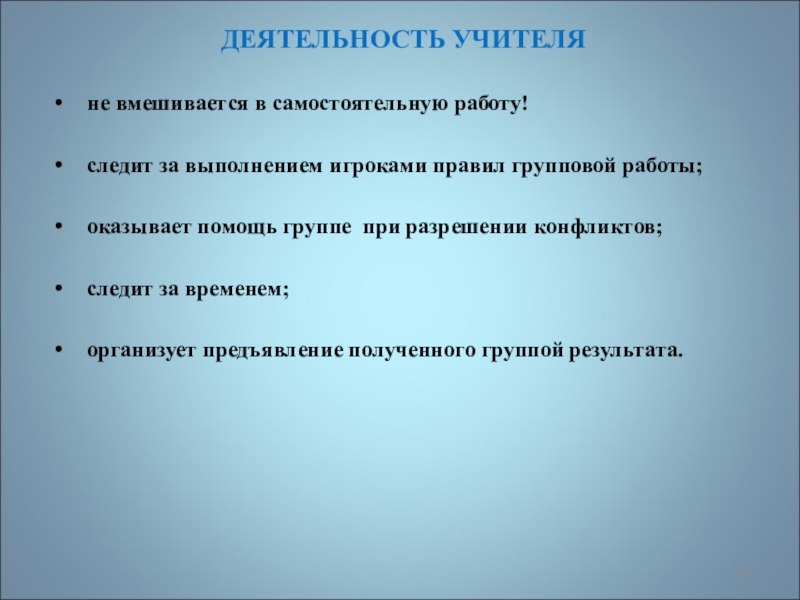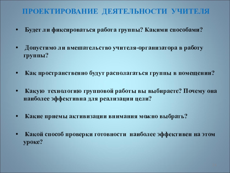 Организация групповой работы требует от учителя особых умений, усилий