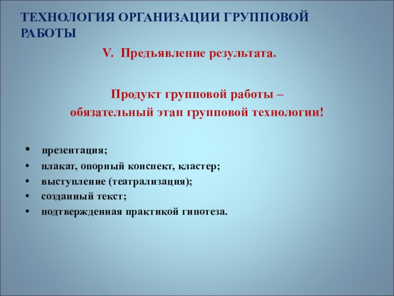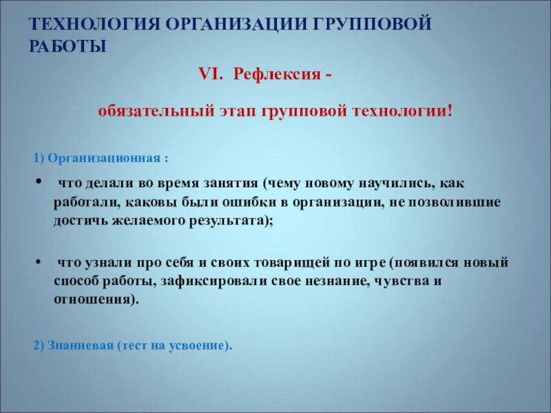 ТЕХНОЛОГИЯ ОРГАНИЗАЦИИ ГРУППОВОЙ РАБОТЫ