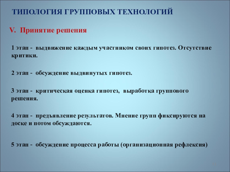 3 этап - критическая оценка гипотез, выработка группового решения.