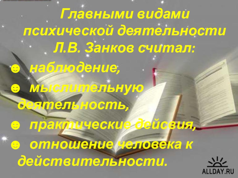 Слайд 3 Главными видами психической деятельности Л.В. Занков считал: