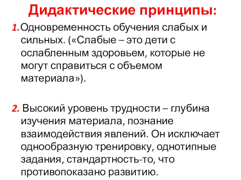 1.Одновременность обучения слабых и сильных. («Слабые –