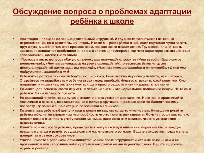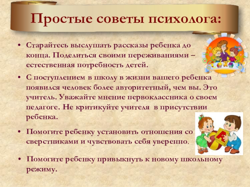 С поступлением в школу в жизни вашего ребенка появился человек более авторитетный, чем вы. Это учитель. Уважайте мнение первоклассника о своем педагоге. Не критикуйте учителя в присутствии ребенка.