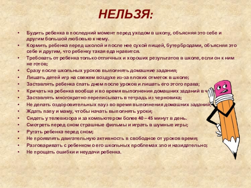 Старайтесь не выработать у ребенка страх перед ошибкой. Чувство страха - плохой советчик. Оно подавляет инициативу, желание учиться, да и просто радость жизни и радость познания. Помните: для ребенка что-то не уметь и что-то не знать - это нормальное положение вещей.