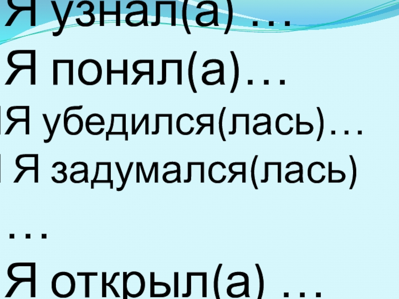 Я узнал(а) …Я понял(а)…Я убедился(лась)… Я задумался(лась) …Я открыл(а) …