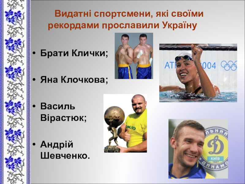Слайд 25 Видатні спортсмени, які своїми рекордами прославили Україну