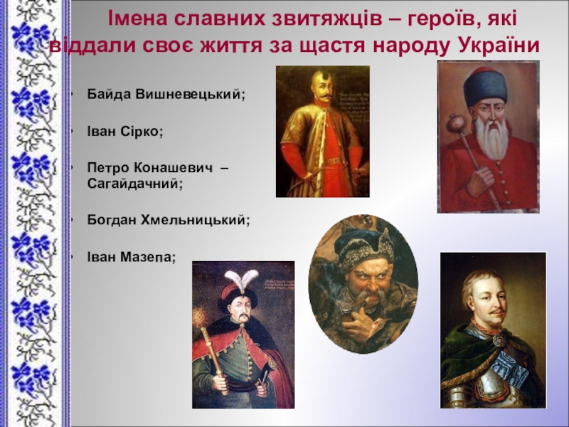 славних звитяжців – героїв, які віддали своє життя за щастя народу України