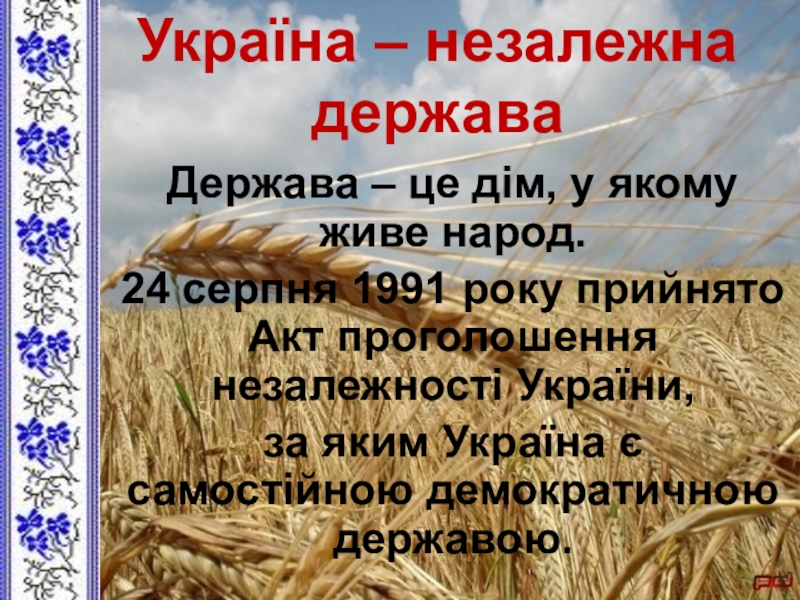 24 серпня 1991 року прийнято Акт проголошення незалежності України,