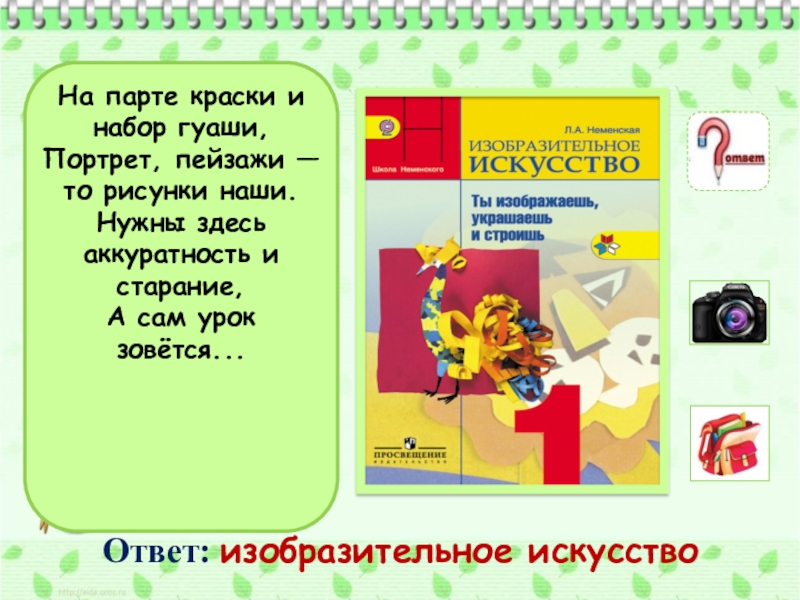 Ответ: изобразительное искусство