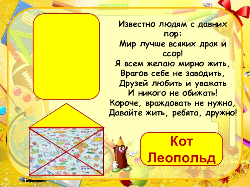 Это сайт презентаций, где можно хранить и обмениваться своими презентациями, докладами, проектами, шаблонами в формате PowerPoint с другими пользователями. Мы помогаем школьникам, студентам, учителям, преподавателям хранить и обмениваться учебными материалами.