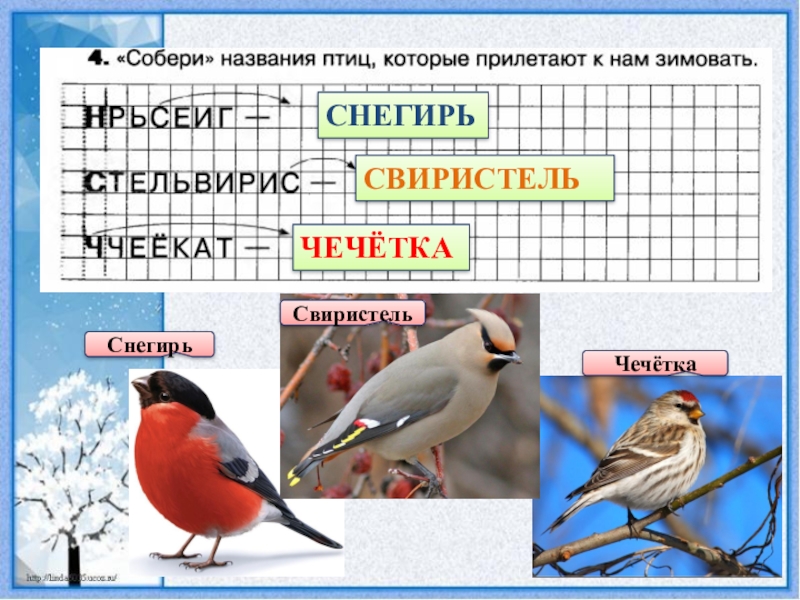 СНЕГИРЬСВИРИСТЕЛЬЧЕЧЁТКАСнегирьСвиристельЧечётка