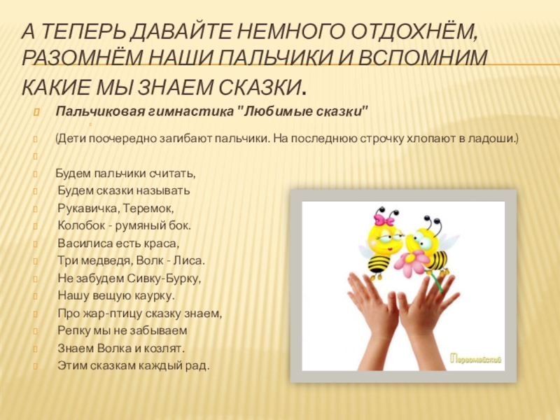Пальчиковая гимнастика "Любимые сказки"