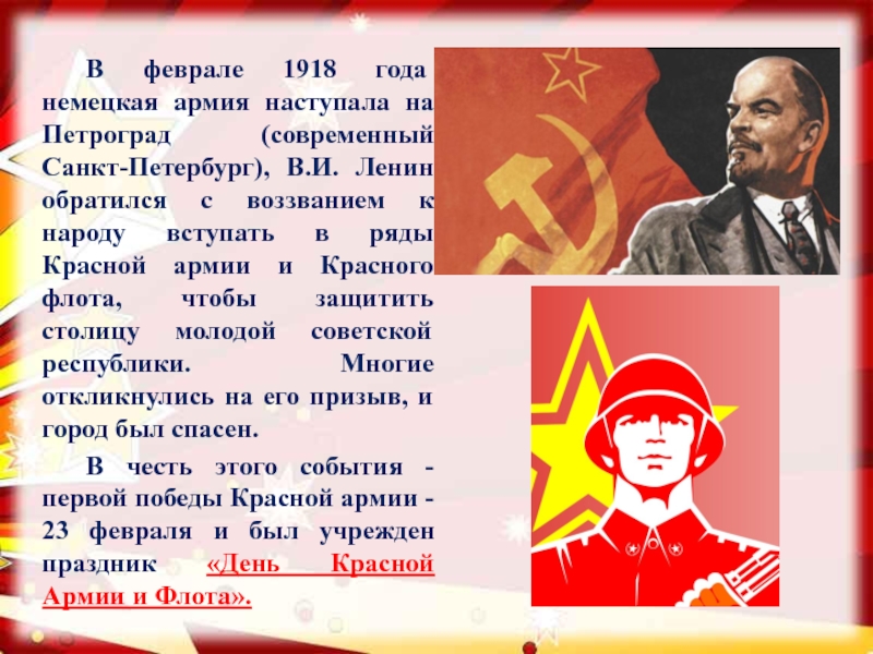 Слайд 6 В феврале 1918 года немецкая армия наступала на Петроград (современный Санкт-Петербург),