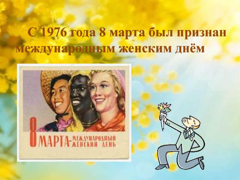 Слайд 15 С 1976 года 8 марта был признан международным женским днём