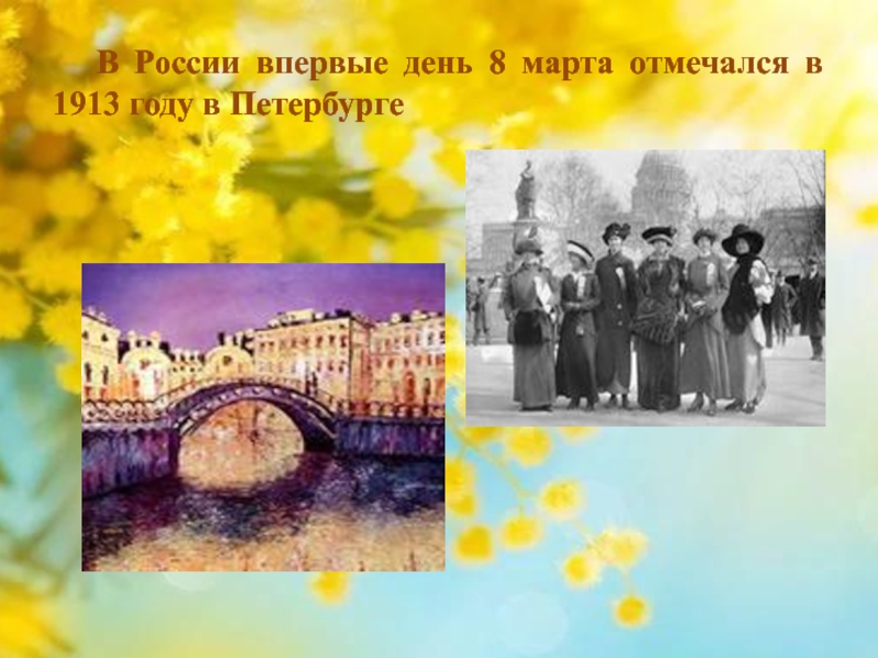 Слайд 14 В России впервые день 8 марта отмечался в 1913 году в