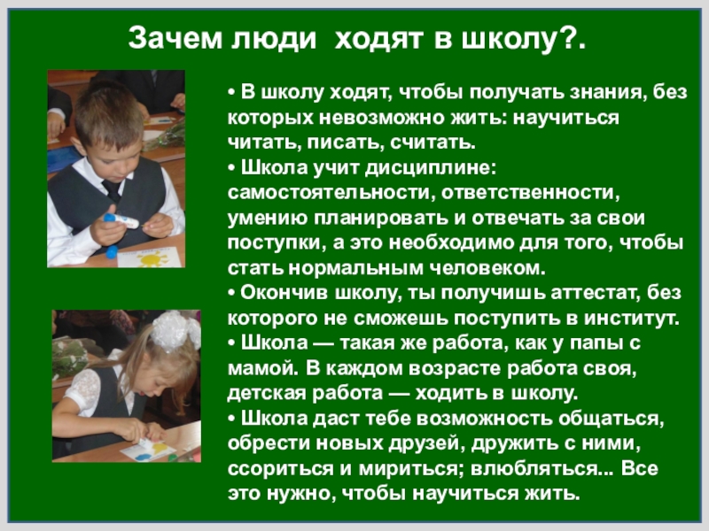 Школа - это словно маленький островок детства, затерянный в бескрайнем океане, и оттуда можно выбраться, только получив определённые знания.