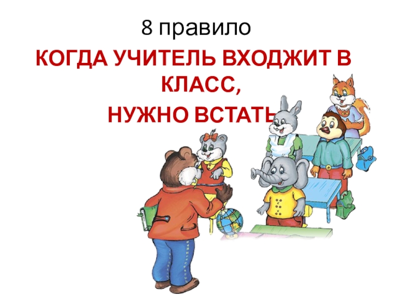 8 правилоКОГДА УЧИТЕЛЬ ВХОДЖИТ В КЛАСС, НУЖНО ВСТАТЬ