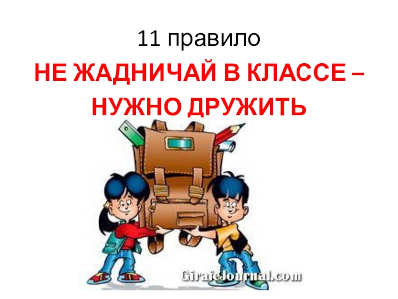 11 правилоНЕ ЖАДНИЧАЙ В КЛАССЕ – НУЖНО ДРУЖИТЬ